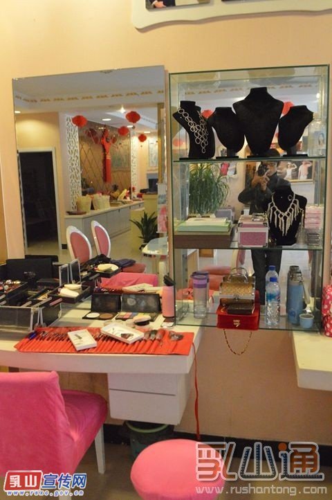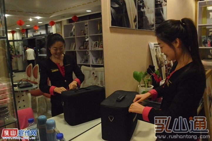 我一边拍照一边和倩倩做简单的交流,倩倩从19岁开始接触化妆到现在已经有8个年头了,对于这些年她一直奋斗的岗位,从刚开始的年轻迷茫到渐渐的成熟自信,期间经历了不少欢笑与泪水。倩倩告诉我今天是小编我运气好,没有赶上预约的早妆,原来早妆就是咱们当地结婚天还未亮就开始为婚礼忙碌,化妆师为了给新娘化妆就需要起得更早,通常是凌晨2-3点,一年算下来,工作开始平均时间在凌晨4-5点左右,因为婚礼期间新娘时常需要补妆,所以倩倩需要一直跟随在新娘左右。晚上平均都是6-7点左右下班,想要又快又好的完成工作需要摄影师和化妆师之间进行配合,无论是哪个环节慢了都会导致工作时间的增加。聊了一会儿,新娘就到了,倩倩和新娘先去3楼的服装间挑选合适的婚纱,这里小编趁着没人提前拍了一张照,挑选完婚纱,返回1楼开始化妆。